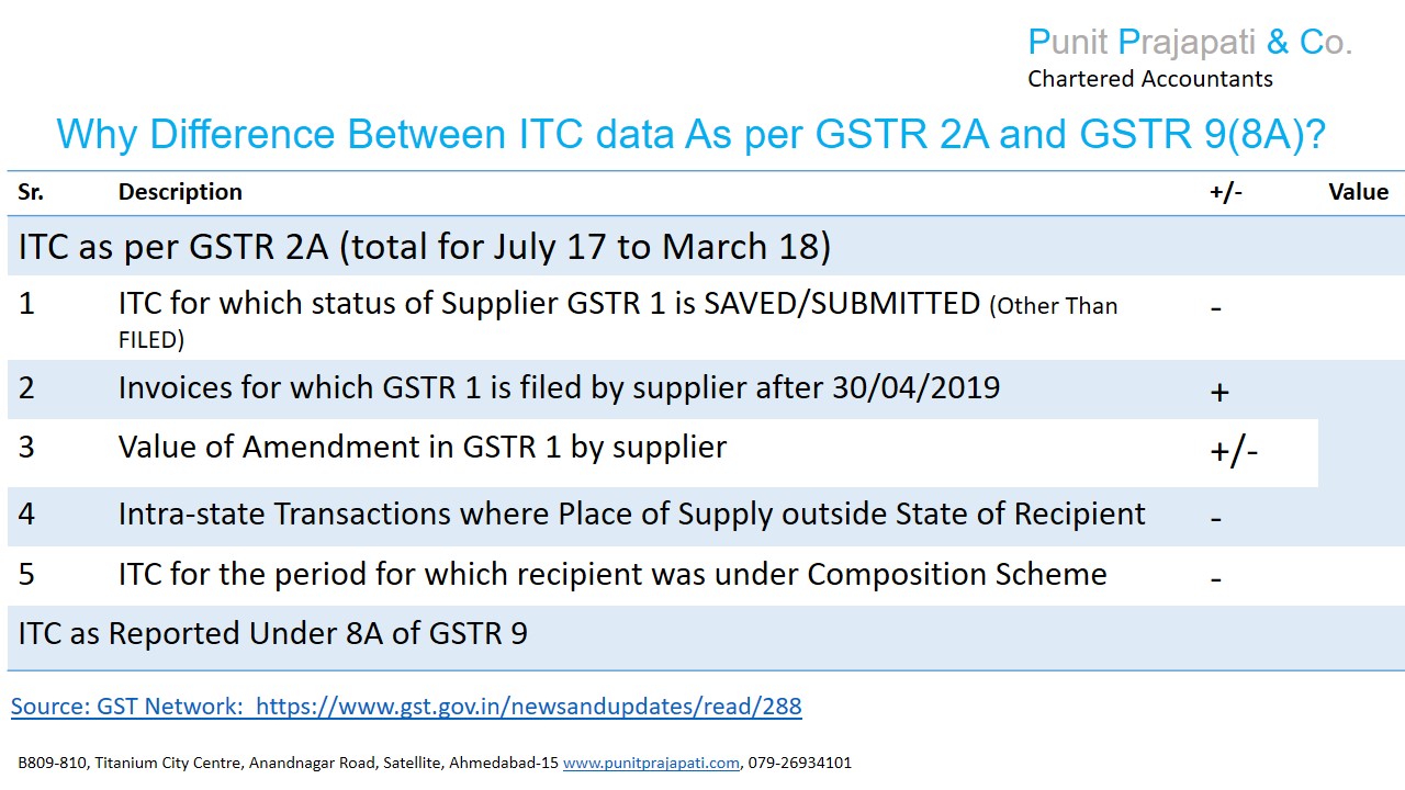 Why Difference Between ITC data As per GSTR 9