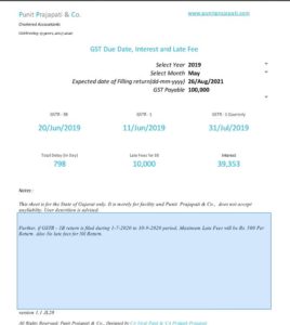 Enter month and Get Due Date Int and Late Fees for GST Returns
