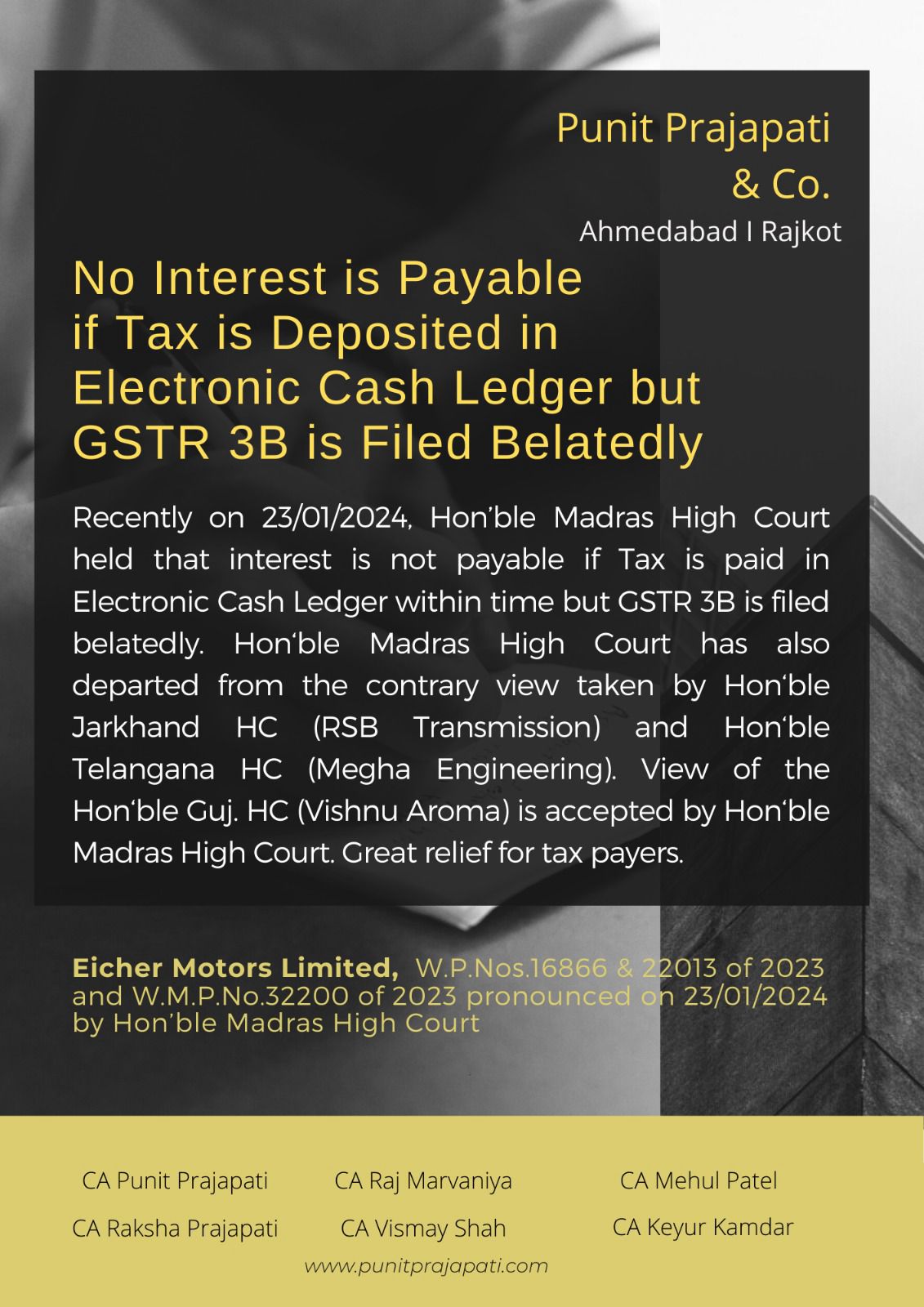 No Interest is Payable if Tax is Deposited in Electronic Cash Ledger but GSTR 3B is Filed Belatedly